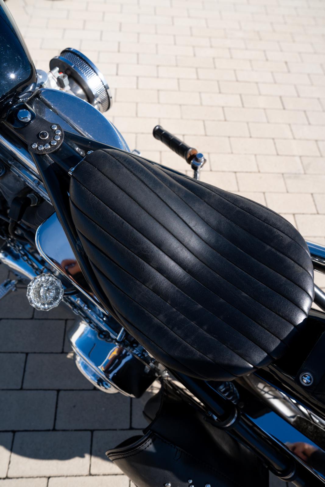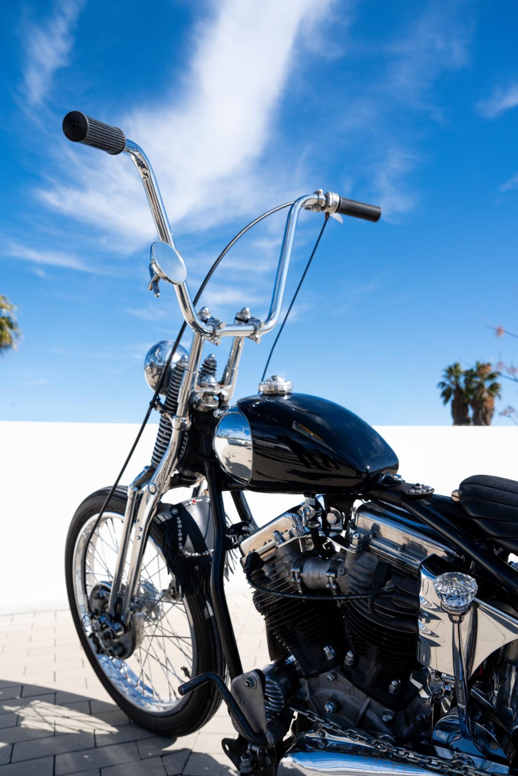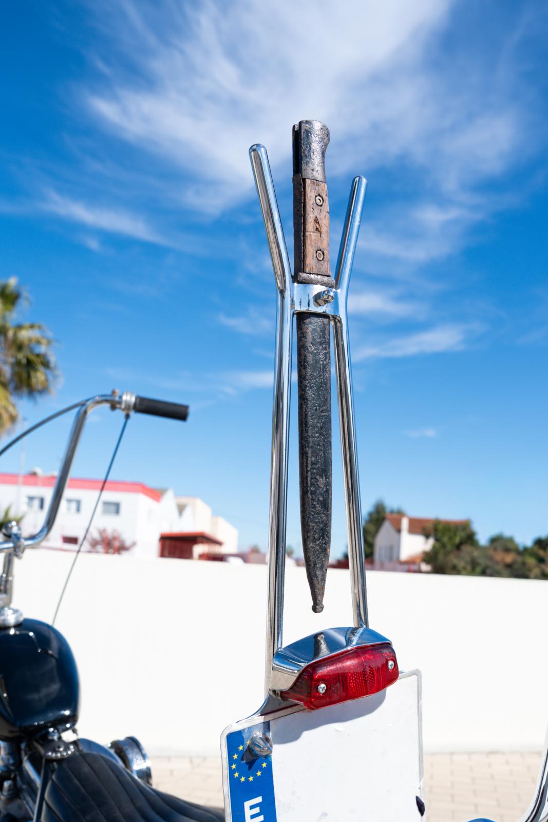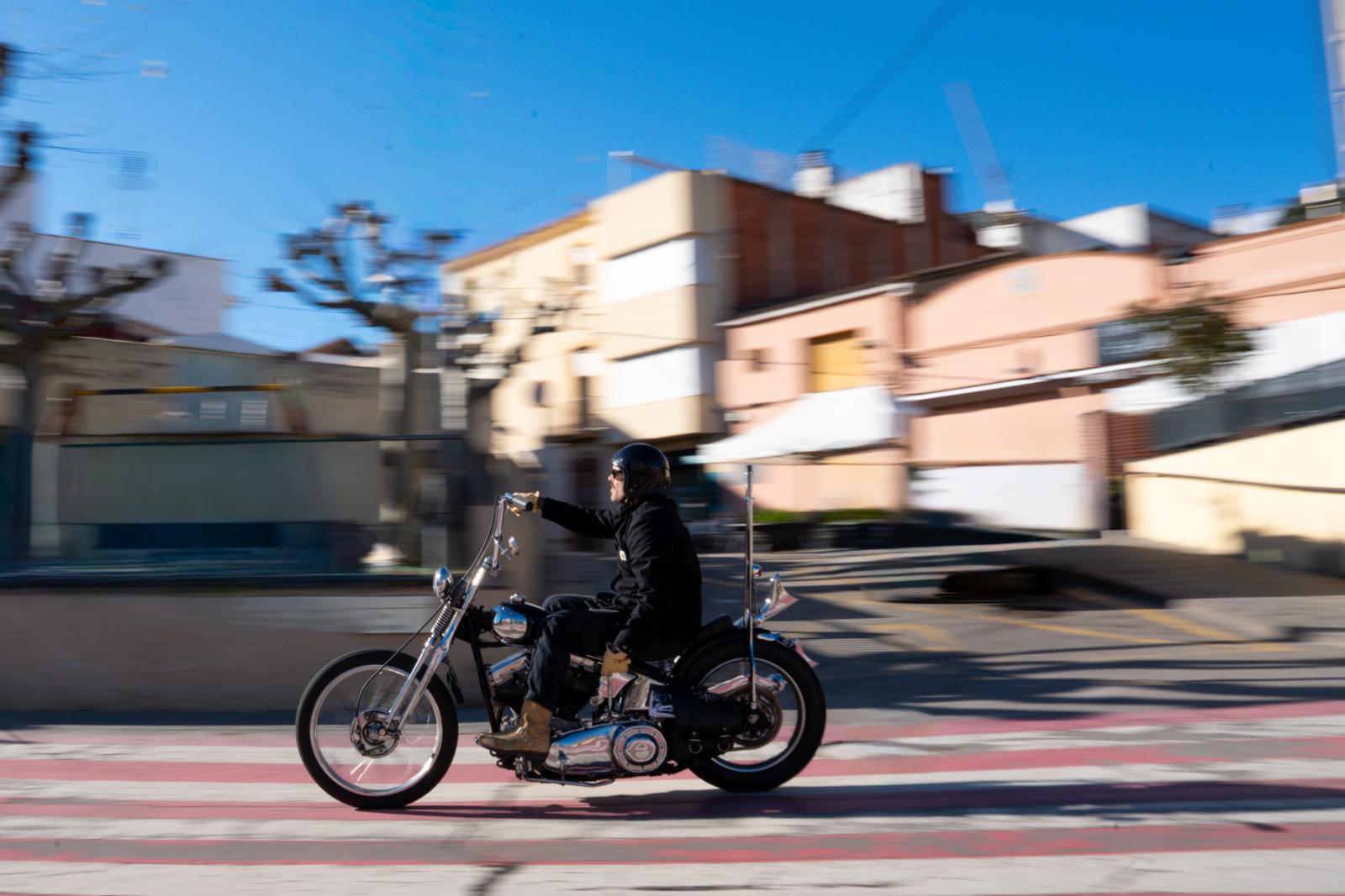 De transformatie van de min of meer originele Panhead tot chopper werd toevertrouwd aan enkele van de beste vakmensen in zijn thuisstad. Het basiswerk werd uitgevoerd door HD Shop Barcelona, een naam die in de lokale scene bekendstaat om haar kwaliteitswerk en diepgaande Harley-kennis. De uiteindelijke verfijning door LeBeef gaf de chopper zijn heerlijke mix van kracht, stijl en onmiskenbare flair. Het resultaat is een chopper voor de èchte motorrijder, maar ook eentje die je raakt als een rijdend juweeltje. Chroom en diepzwart spelen met elkaar de tank. De stance is gebaseerd op een 18-inch achter- en een 21-inch voorband, wat hem precies het juiste chopper-silhouet geeft. Jarenlang was de Panhead geen speeltje voor in het weekend. Het was vervoer. Dennis reed er dagelijks op. Werk, privéleven en alles daartussenin; de ’53er Pan was erbij. Dat veranderde helaas in 2020. Barcelona introduceerde, net als veel andere grote Europese steden, ZBE’s (lage-emissiezones). Plotseling was het vrijwel onmogelijk om met een vintage chopper door de stad te rijden. De regels werden strenger. De toegang werd beperkter. De wereld verandert en is bepaald niet enthousiast over carburateurs en open uitlaten… Toch werd de Panhead geen statisch pronkstuk en buiten de stad blijft Dennis hem volop gebruiken.