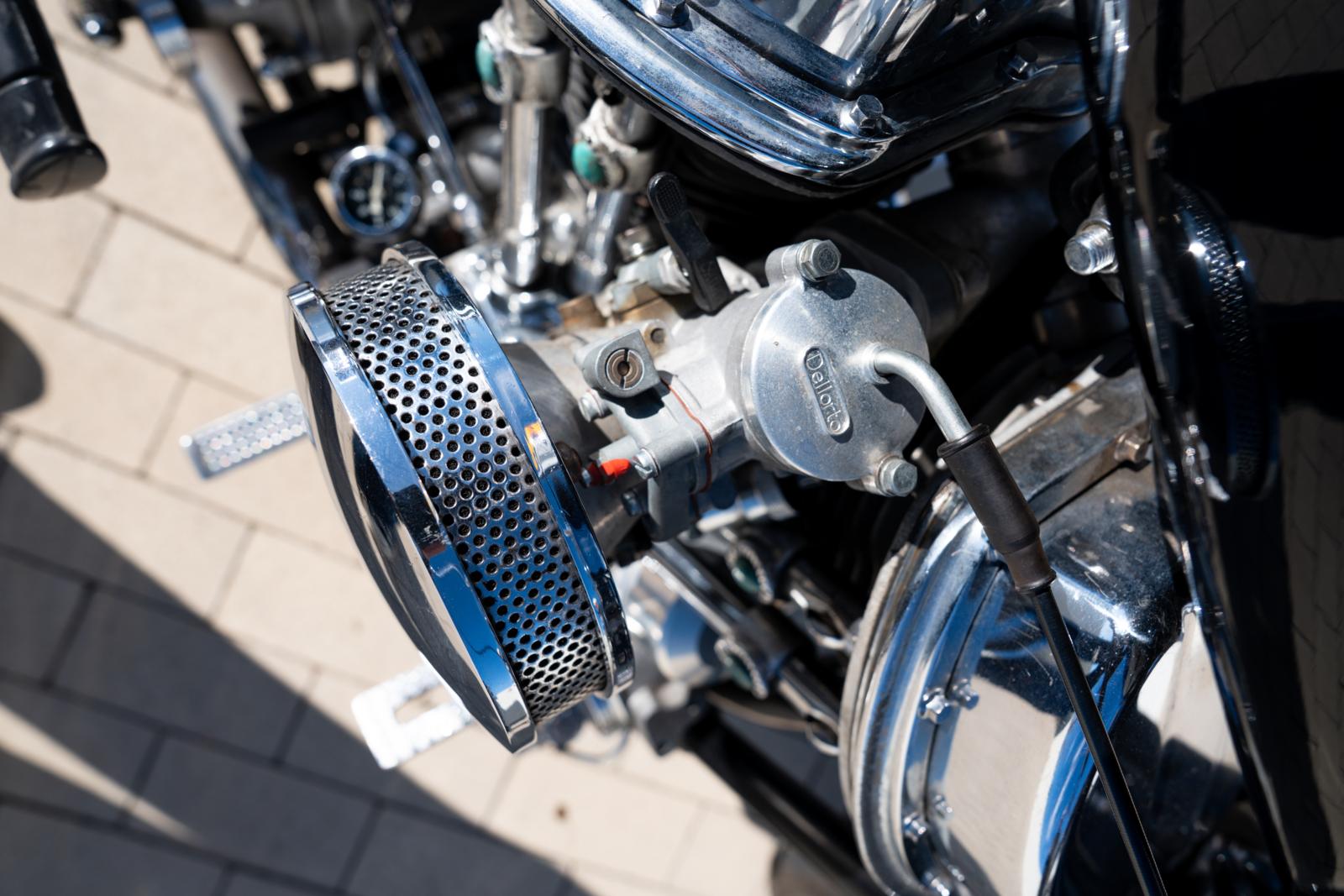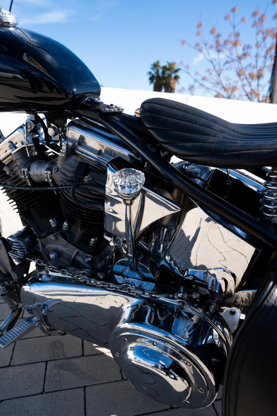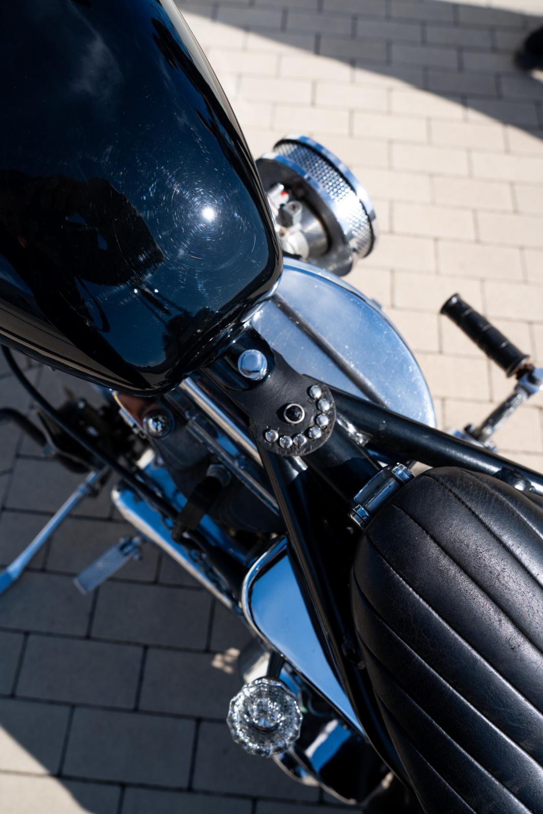 Veertien jaar geleden hoorde Dennis over een Panhead uit 1953 in opmerkelijk goede staat. De motor was oorspronkelijk afkomstig van een Amerikaanse militaire basis in Duitsland, die in 1962 was gesloten. Toen de Amerikaanse troepen zich uit Duitsland terugtrokken, konden enkele gelukkige inwoners de achtergebleven voertuigen bemachtigen. De Panhead bleek terechtgekomen te zijn bij inmiddels een 83-jarige heer, die hem decennialang zorgvuldig had bewaard. Toen Dennis ontdekte dat de man de motor wilde gaan verkopen, aarzelde hij geen seconde. Deze Panhead was voor hem! Eén ding heeft hij sinds de aanschaf nooit veranderd: het blok. Voor Dennis is die continuïteit belangrijk. “Machines hebben een geheugen”, weet hij. En deze machine had al een leven achter zich voordat hij bij hem kwam.