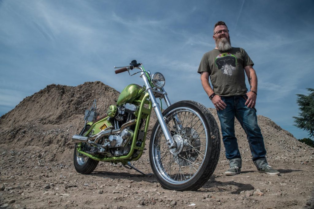 Wilbert van Boekel uit Uden draagt met een knipoog de geuzennaam ‘Chopadilic’. “Ik ben gewoon verslaafd aan choppers”, zegt hij. Naast een fanatieke rijder is hij ook een begenadigd sleutelaar. Zijn bebaarde verschijning komt je misschien bekend voor, want hij dook al eerder op in Bigtwin. Dit keer bouwde hij een Sportster hardtail chopper met een eigenzinnige draai.