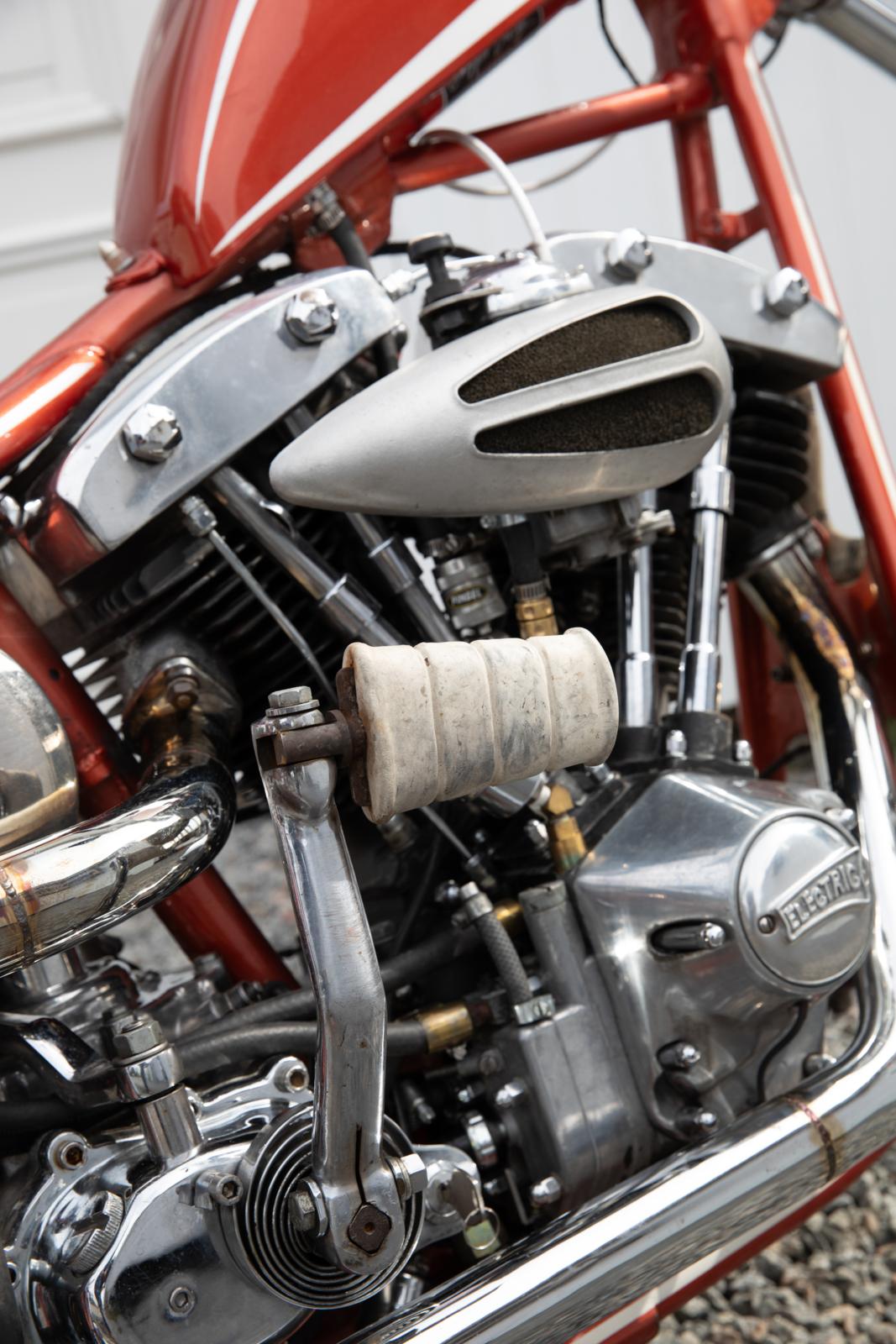 Omdat Luggen een pesthekel heeft aan isolatie tape en tie-wraps bond hij de kabels vast met touw, uitlaat wrap en schoenveters. Het hart van de chop wordt gevormd door een volledig gerestaureerde 1200 Shovelhead.