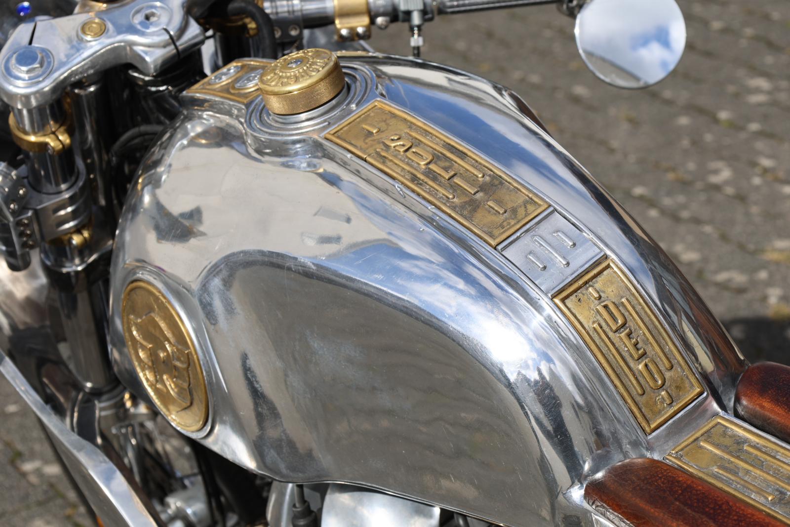 De naam ‘Projekt Schatten, (ofwel ‘Project Schaduwen’) verwijst naar een Japans designboek, ‘Praise of Shadows’ (Lof der Schaduwen),” verklaart Enrico. “De filosofie van dat boek is dat schoonheid niet schuilt in perfectie, symmetrie, rechte lijnen en smetteloze hoogglans oppervlakken, maar in de imperfecties en deukjes; de gietbubbels en de zichtbare gebruikssporen; de ‘schaduwen’. Het idee is dat je het bouwproces op de afgewerkte motor laat zien, in plaats van het te verbergen. En uiteindelijk dat je kunt zien hoe de motor gebruikt wordt, omdat er geen beschermende lagen of iets dergelijks op de custom onderdelen zitten. De motor zal dus verouderen en een patina krijgen, afhankelijk van hoe en waar hij gebruikt wordt.”