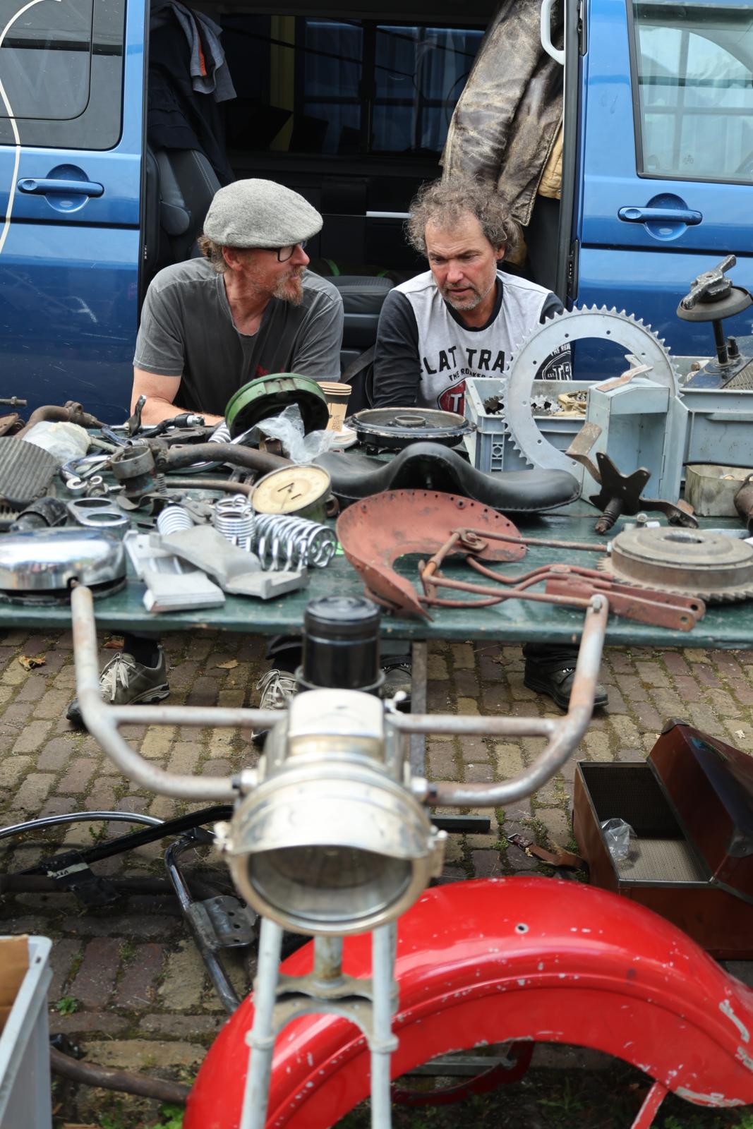 Mensen uit heel Europa en zelfs de VS en Australië bezochten de AMCA Meeting en genoten van de gezamenlijke passie voor oude motoren. Van 100% origineel tot wilde customs. Mooi voorbeeld van dat laatste was de zijklepper H-D trike, gebouwd in Californische chopperstijl, die tussen de meestal compleet originele motoren stond en daardoor extra opviel. Hoewel de prijzen voor vintage motoren nog steeds met de dag lijken te stijgen, werden er op donderdag al volop motoren gekocht en verkocht, net als veel onderdelen, want ook daar was een enorm aanbod van. De vele (internationale) handelaren hadden een enorm assortiment aan nieuwe en gebruikte onderdelen te koop; van complete motorblokken tot verroeste frames, van bougies tot zijspanbakken.
