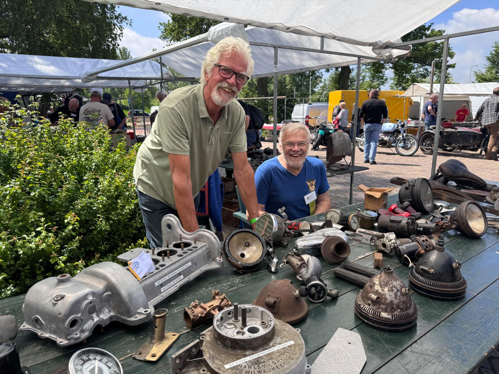 De sfeer was dan ook opperbest, van gezellige praatjes tot verhitte discussies of dat ene onderdeeltje nou wel of niet origineel is… Blije mensen die tevreden huiswaarts keerden met het onderdeel waar al zo lang naar gezocht was, trotse eigenaren die glunderden bij elk compliment en niet te vergeten, maar wel heel belangrijk, het weer ontmoeten van oude vrienden! ‘Een fenomenaal openluchtmuseum’ is de beste manier om de AMCA Meeting te beschrijven. Er komen en vertrekken motoren en het geluid van oude machines die worden gestart is de muziek waar we zo graag naar luisteren. De geur van olie, benzine en uitlaatgassen bedwelmt ons motorliefhebbers allemaal en we vinden het geweldig. Wat een prachtige Meeting was het weer, tot volgend jaar!