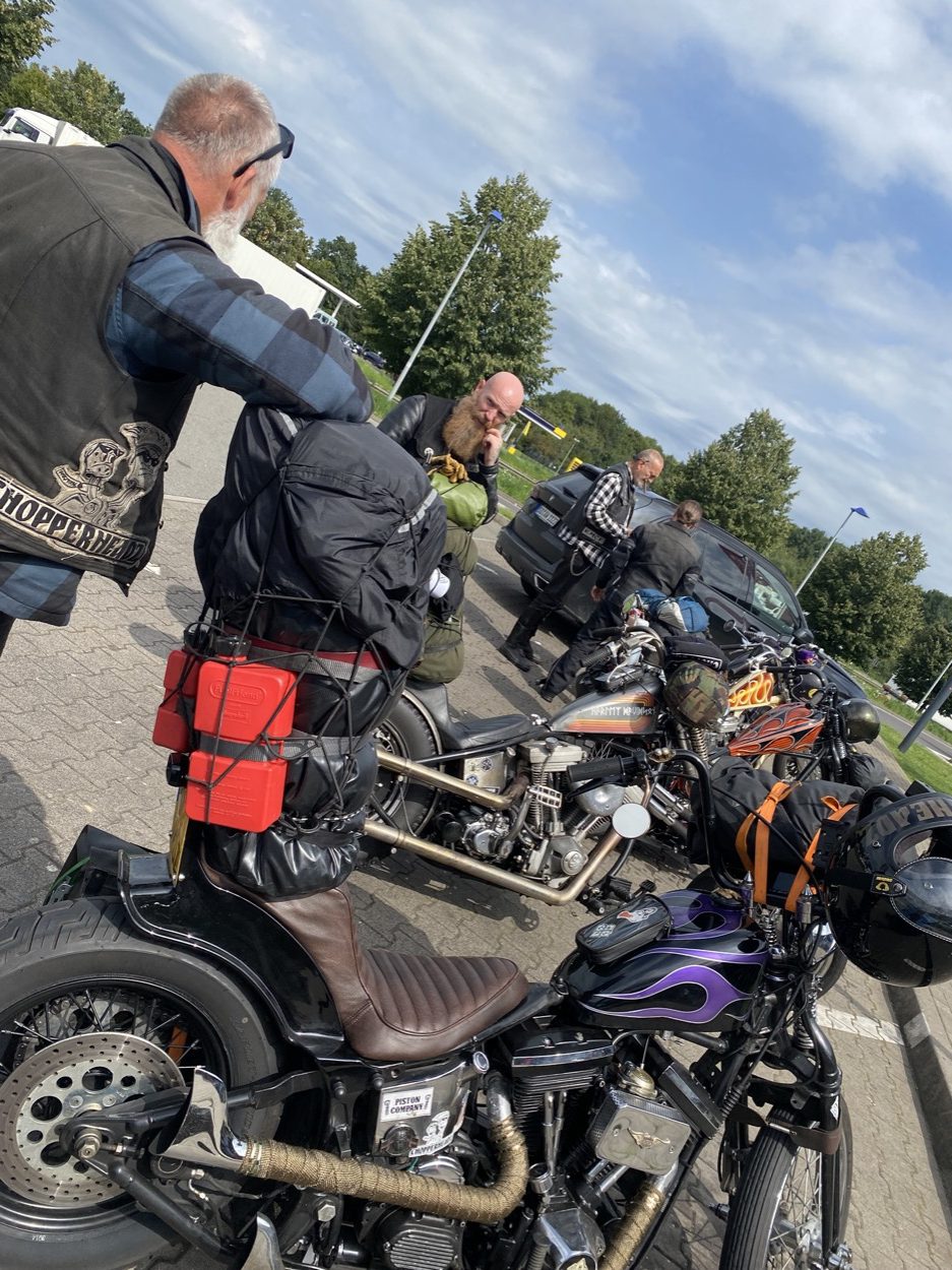 Roadcaptain Elroy had goed zijn best gedaan om maximaal van het landschap te kunnen genieten. We hoefden dus per dag niet te veel kilometers te maken zodat er tijd over zou blijven om onderweg nog dingen te kunnen bekijken of rustig een bakkie te doen. Omdat wij redelijk in de buurt van het bekende Zweedse chopperbedrijf Calles Chopperdelar Sweden AB waren, slechts 60 kilometer extra, besloten wij om daar eens te gaan kijken. Aangekomen bij Calles worden wij wederom hartelijk ontvangen door de eigenaar en krijgen wij de ‘grand toer’ door zijn geweldige bedrijf. Licht kwijlend vanwege al het moois verlaten wij na een paar uur het pand. Op naar Roadriders MC Landskrona. De reis loopt weer voorspoedig, ondanks een kleine tegenslag. Net voor aankomst bij het clubhuis besluiten we om nog even de tank vol te gooien, zodat wij de volgende dag gelijk door kunnen. In alle drukte en vanwege de gigantische keuzemogelijkheden bij de pomp tankt Elroy per ongeluk voor iets van biobrandstofethanolbenzine of iets dergelijks. Maar bij het wegrijden trekt hij een rookgordijn waar de gemiddelde James Bond achtervolging-scene niks bij is! Wij gelijk aan de kant en we besluiten om de tank af te tappen. Aangezien wij allemaal onze ‘Fuel Friend’ bij ons hebben is het probleem snel opgelost. Ook verbazingwekkend trouwens, hoe snel de weg afgezet werd voor dit kleine incidentje. Een vrouwelijke pechhulp kwam gelijk de weg afzetten en bracht een emmer om de brandstof in te lozen.