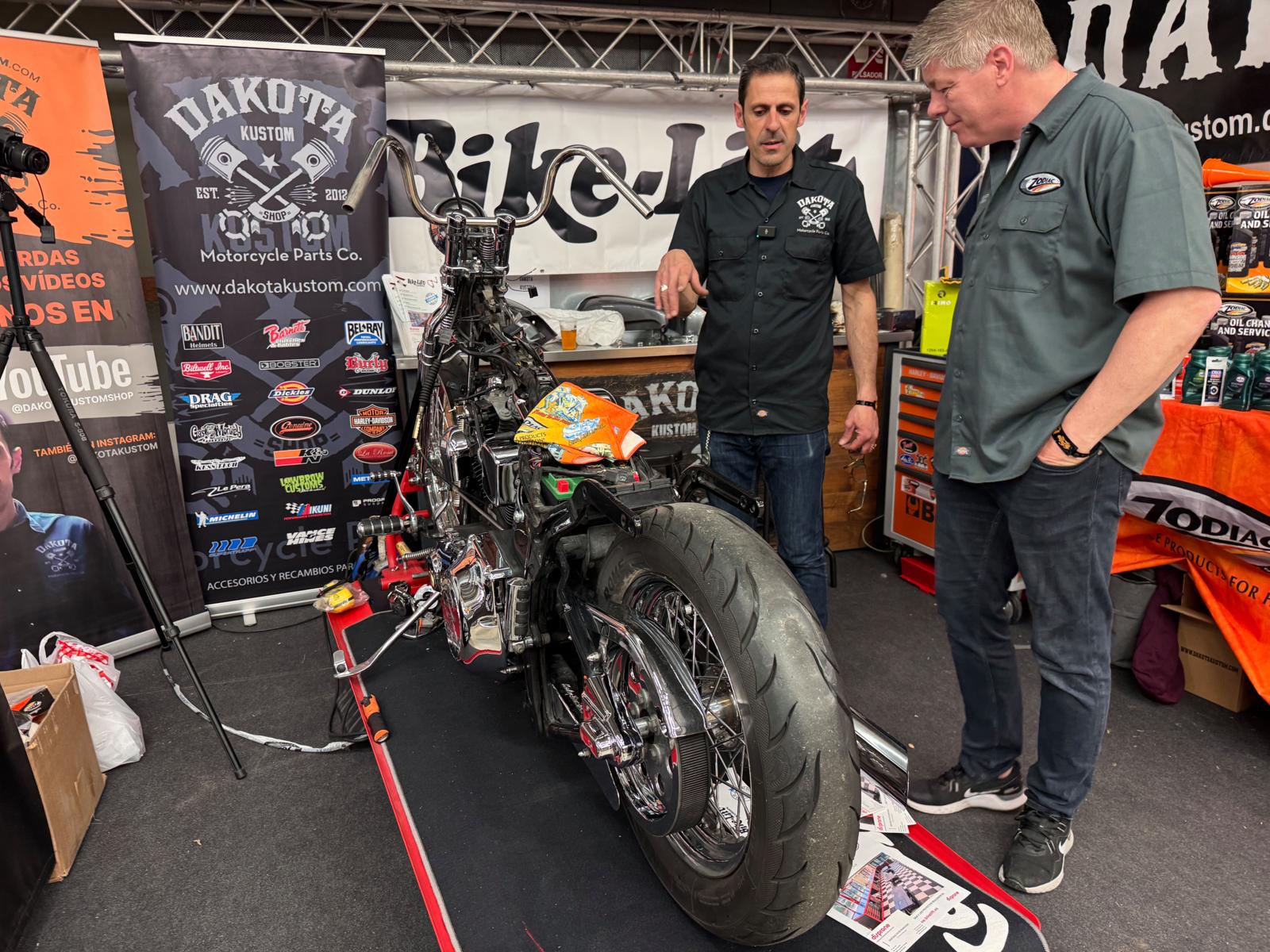 Vincent Pels van Zodiac, de Italiaanse custombouwer Francesco Crazyoils en ondergetekende hadden de taak om de beste motoren uit te kiezen. Geen gemakkelijke opgave, mede omdat in Spanje veel nadruk ligt op Scramblers, Caféracers en Roadsters, die qua design vaak dicht bij elkaar liggen en waarin veel stijlelementen elkaar zelfs overlappen. Het enige onderscheid kan soms slechts bestaan uit het gegeven of een motor het wel of niet op noppenbanden staat… Maar na een dag intensief jureren, enkele pittige discussies en het minutieus tot in de kleinste details beoordelen van alle motoren, konden zondagmiddag de winnaars bekend gemaakt worden. Dat werd best nog wel een spektakel, want ook hier geldt; custombikes moeten kunnen rijden! Vandaar dat het hele gedeelte van de bikeshow leeg werd gemaakt en alle motoren verhuisden naar de naastgelegen hal, waar er een soort ‘catwalk’ werd gecreëerd waarover de eersteprijswinnaars hun motoren naar het podium konden rijden. Iets wat niet alle winnaars goed begrepen hadden en sommigen duwden dan ook puffend in de warmte hun motor naar voren voor de presentatie… Winnaar van de Bigtwin Special Award werd de Sportster Ironhead van Spanover. Een klassieke chopper met veel zelfgemaakte onderdelen waarover binnenkort een reportage verschijnt. Winnaar van de Madness Photography Trofee werd Ale Luna met haar kleurrijke Evolution Sportster en ook hiervan binnenkort een reportage in Bigtwin.