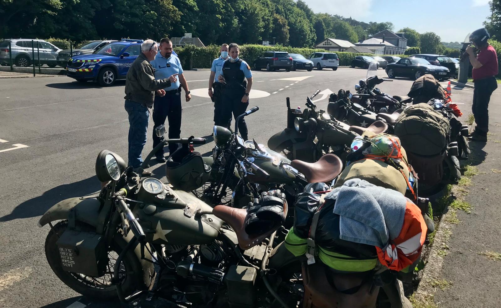 Na Dieppe richting Etretat. Mooie stad met kleine steegjes, we kwamen net van de kustlijn en waren op weg naar onze camping toen ik in mijn ooghoek een politieauto zag aankomen. Deze kwam ook onze steeg in en de agenten begonnen tegen Simon te praten. Laat die nu net totaal geen woord Frans spreken… Alle motoren lekker ronken en pruttelen en ik maar snel naar Simon om hem te helpen. Hij zat behoorlijk in de rats, want dacht dat ze hem nodig hadden voor een Covid bewijs of zo. Het waren twee vrouwelijke agenten en ze vertelden dat hun baas vast gecharmeerd zou zijn van onze motoren. Ze vroegen of we achter hen aan wilden rijden naar het bureau, zodat ze de baas konden verrassen. Dat is ok vond ik, echter dan wel onder begeleiding van sirene en zwaailicht. Zo geschiedde! Door de smalle straten van Etretat, sirene, zwaailicht, een hoop Harley kabaal en een vette grijns op al onze gezichten (ook bij de politie dames trouwens). Aangekomen bij het bureau natuurlijk hilariteit alom. We moesten uitleg over de motoren geven en ze wilden er natuurlijk ook even op zitten. Nu had Piet een olie probleem en hij kon wel wat extra olie gebruiken. De meeste kans hadden we bij een tractor bedrijf. Of meneer de agent misschien een winkel wist..? Meteen bellen en 10 min later met sirene en zwaailicht gevolgd door ons scheurend over de buiten wegen richting de winkel. Piet kon zijn olie aanschaffen. We waren ondertussen ook langs onze camping gereden. Niet gereserveerd, doen we nooit. De camping had het gevreesde bord ‘complet’ voor de ingang geplaatst. Gevolg… Sirene aan, groep motoren met olie naar de camping. Maar hij was echt complet en zelfs de vriendelijke agent kreeg het niet voor elkaar. Geen stress, paar belletjes en de sirene ging weer aan. Voor ons een teken om te volgen. Nu kwamen we bij een andere camping die eigenlijk ook vol was. Voor ons een ideale plek want er was ook een restaurantje bij. Oom agent gaf aan dat dit de ideale camping was omdat onze motoren veilig konden staan vanwege het hek waar de camping ‘s nachts mee werd afgesloten. Afscheid genomen van de behulpzame agent en zijn assistent. Was echt super om dit mee te maken!