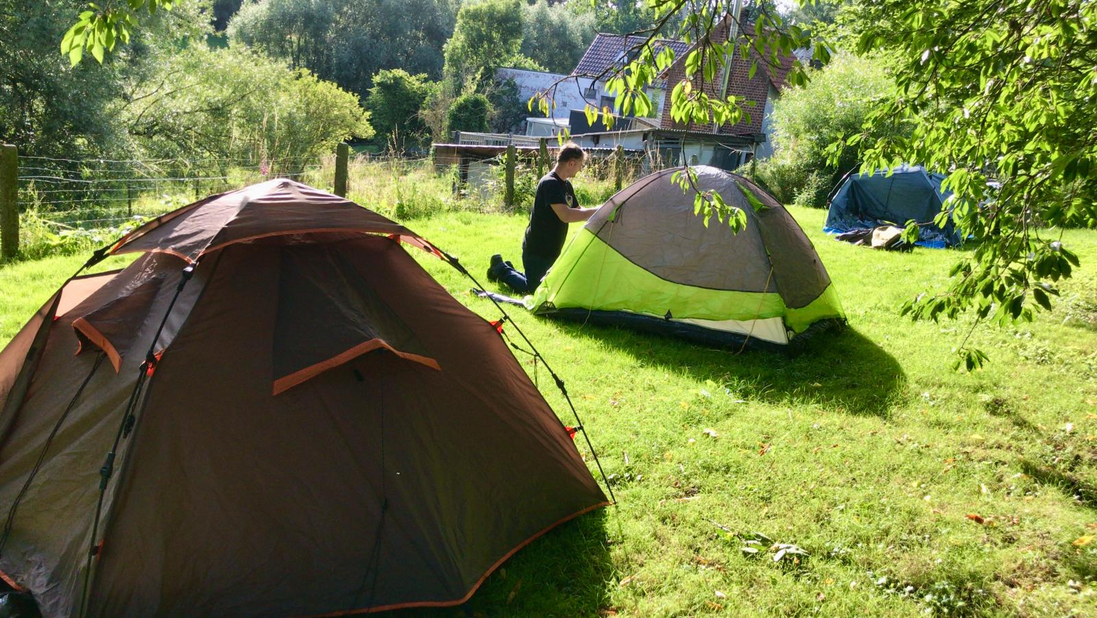 De camping eigenaar ging er mee akkoord en we konden bij het volleybal veld staan omdat hij eigenlijk helemaal vol zat. Onze tactiek is eerst een plekje veroveren en dan over stroom beginnen. Evert heeft dit namelijk nodig.