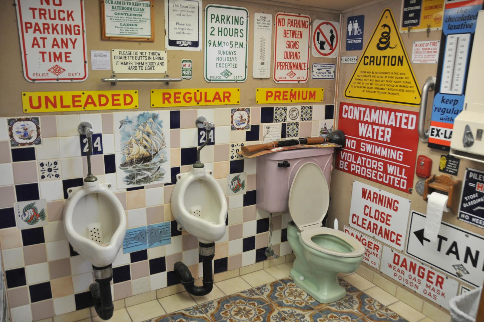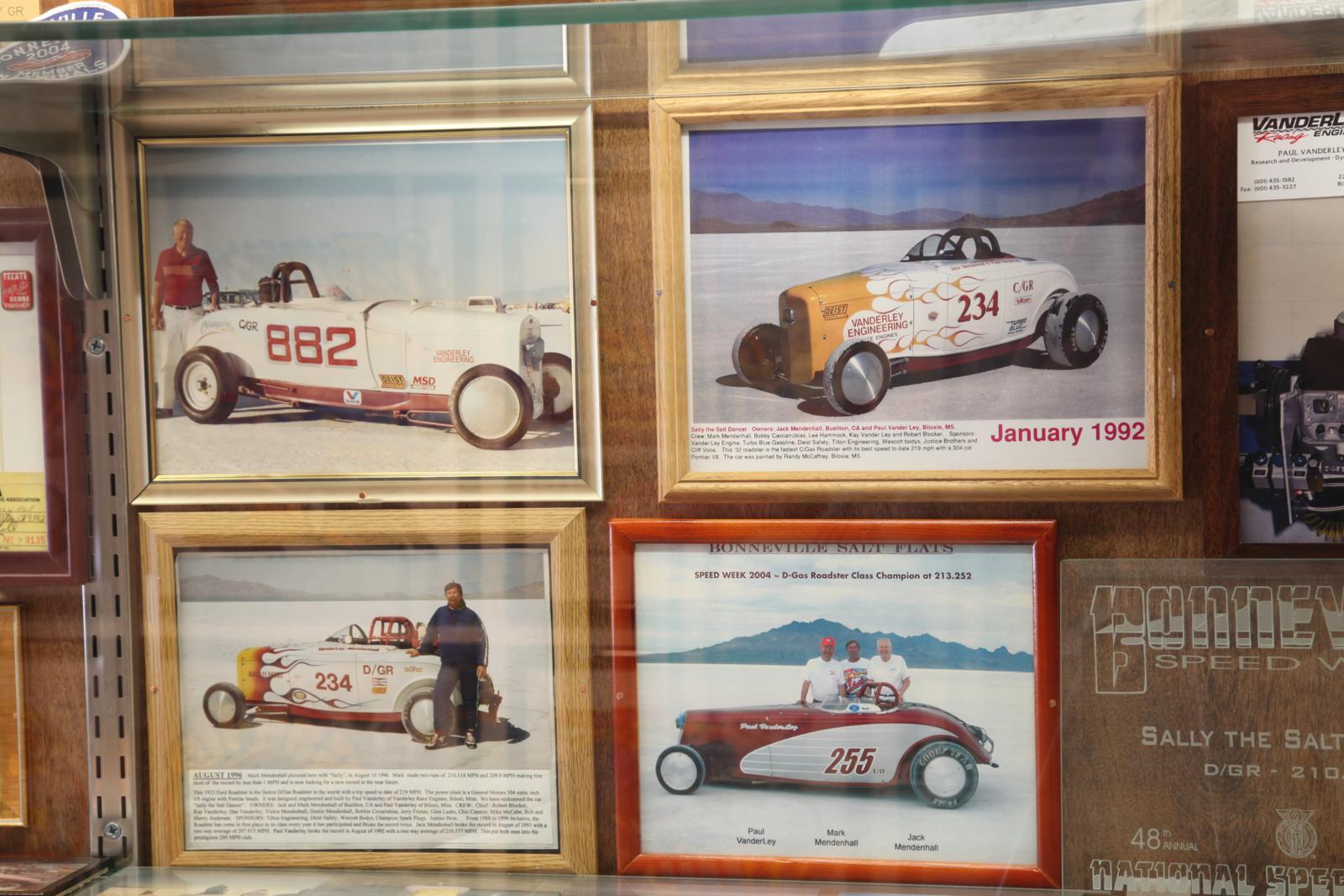 Mark en Vicky wonen te midden van hun collectie en laten graag alles zien, van de keuken tot het toilet, dat ook een bezienswaardigheid op zich blijkt te zijn. Zoals het gros van de Amerikanen dat buiten de grote steden woont, hebben zij veel ruimte en bijna alles wordt eeuwig bewaard. Mark en Vicky runden vijfentwintig jaar het Chevron Service Station, waar Jack vroeger in was begonnen. In het begin werd Jack’s collectie goed uitgedund, totdat zij zelf ook die verslavende verzamelaarswoede kregen en er weer steeds meer aan de verzameling werd toegevoegd, resulterend in dit museum. In de ‘diner’, compleet met goed gevulde bar, krijgen we koffie. Terwijl wij alles in ons proberen op te nemen en daarbij bijna een stijve nek krijgen, omdat ook het plafond helemaal vol borden hangt, vertelt Vicky dat het museum ook voor bruiloften, feesten en meer gebruikt wordt. Vader Jack en Mark waren ook actief in de racerij. Mark doet nog steeds van alles wat met auto’s en snelheid te maken heeft en racet graag op de Dry Lakes, drooggevallen meren als El Mirage waar snelheidsrecords worden gereden. “Yeah”, zegt Vicky, “Gas-Up-Jack en Mark waren bij diverse race evenementen betrokken. Omdat hij zo gek was op de sport, stelde hij zijn huis beschikbaar voor Hall of Fame ceremonies. Nadat hij in 1991 met zijn geprepareerde wagen een record neerzette van 207,015 Miles per hour (meer dan 330 km/u) mocht hij zichzelf lifetime member of the 200 MPH Club noemen. In 1993 werd hij opgenomen in de Land Speed Hall of Fame. In 1996 haalde Mark met dezelfde auto een snelheid van 210,114 miles per hour.” Mede vanwege hun liefde voor deze tak van sport organiseert het echtpaar de tweejaarlijkse ‘Gas Up’, voor mensen die betrokken zijn bij Land Speed Racing op beroemde plaatsen als Bonneville Salt Flats en El Mirage.