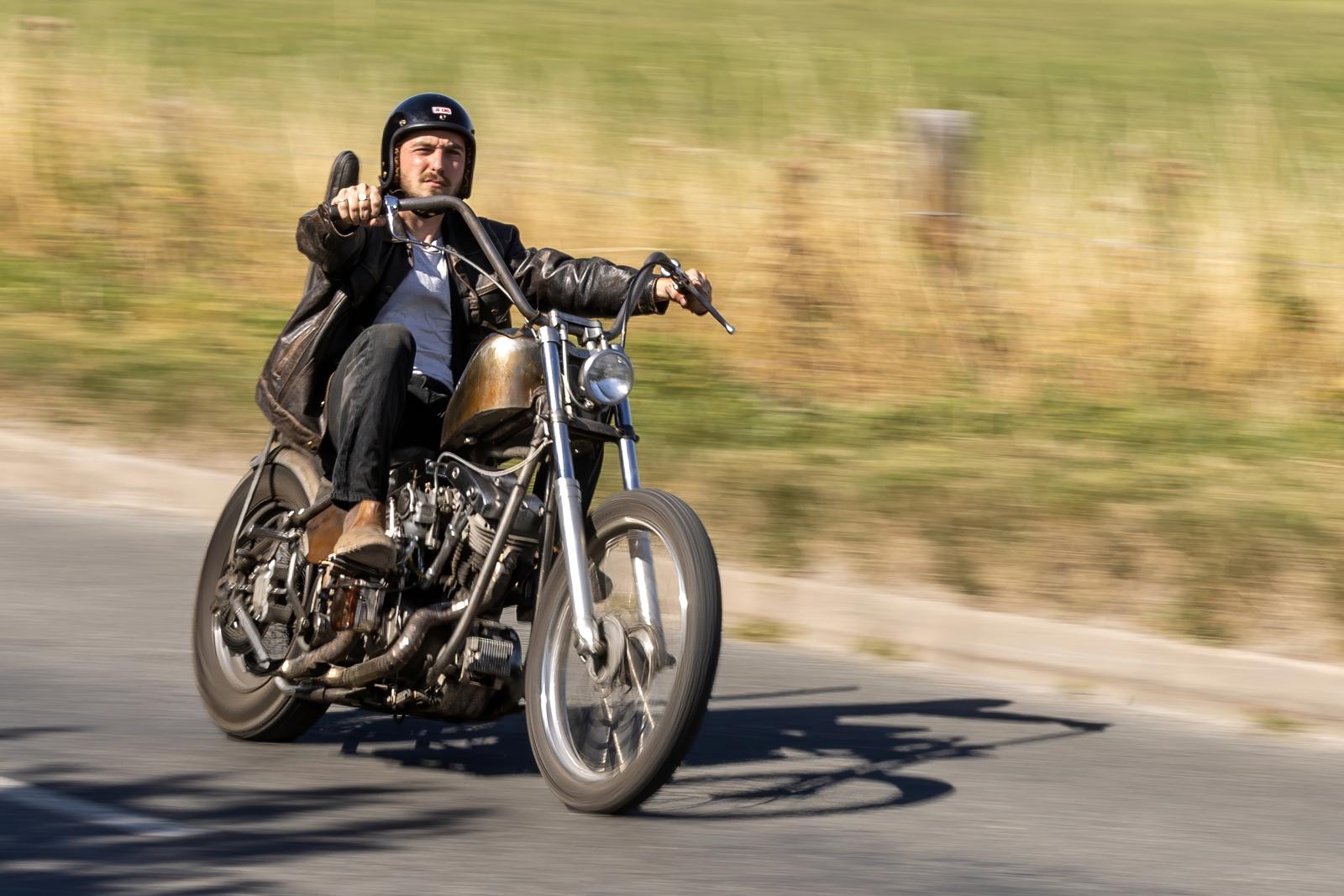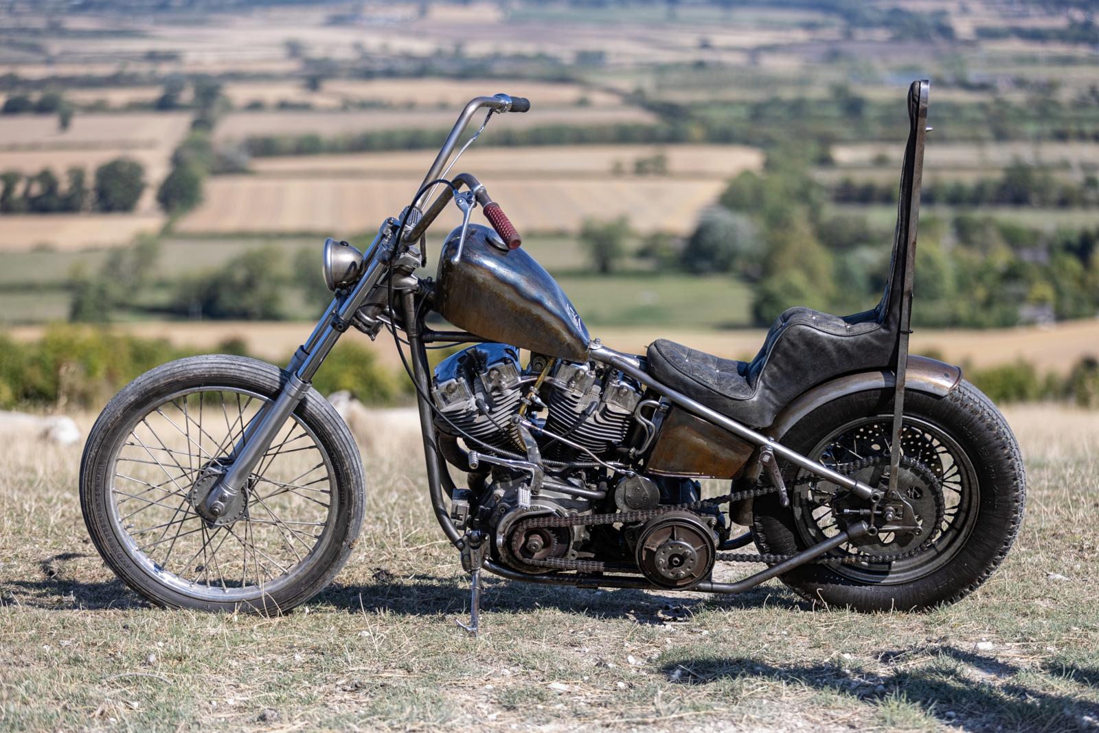 De motor, die ik inmiddels ‘Hot Dessert’ gedoopt heb, rijdt fantastisch. Het is alles wat je van een Shovelhead kunt verwachten: luid, snel (voor een Harley), redelijk comfortabel en hij stuurt geweldig. De remmen zijn echter volkomen waardeloos, maar daar ben ik nog mee bezig. Ik geniet van elke rit. Ik had het genoegen om met een leuke groep naar Dover te rijden voordat we pech kregen. Ik was eigenlijk op weg naar Flanders Chopper Bash, maar mijn vaste remleiding brak in die eeuwige rij voor de ferry! Die heb ik daarna vervangen door een flexibele leiding en ze heeft me vervolgens zonder problemen naar The Hook Up gebracht. De Shovel is geweldig en ik ben dol op haar, ook al geeft ze me bij elk gat in het asfalt en elke te laat opgemerkte putdeksel een flinke schop in mijn ingewanden. Lang leve Hot Dessert!