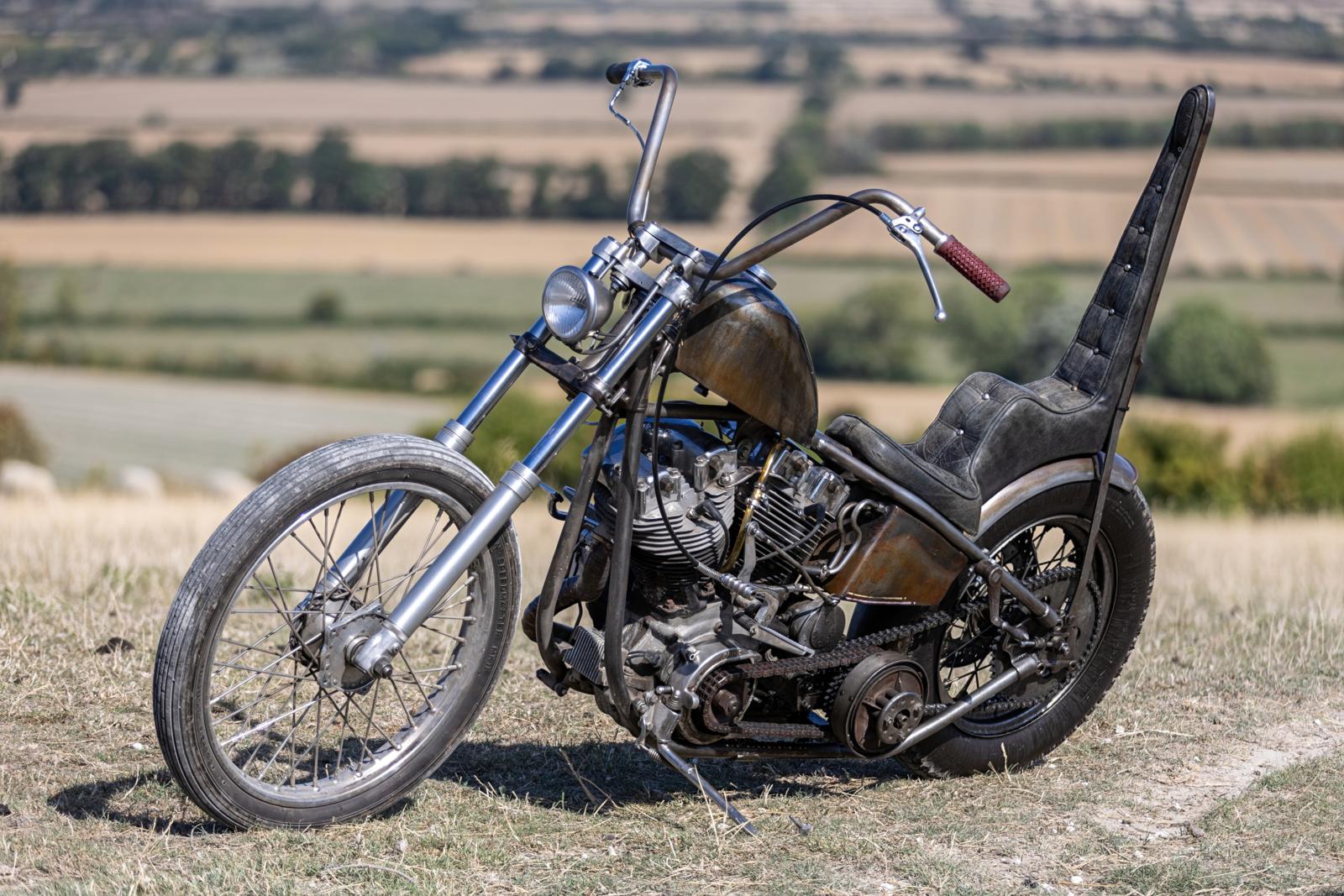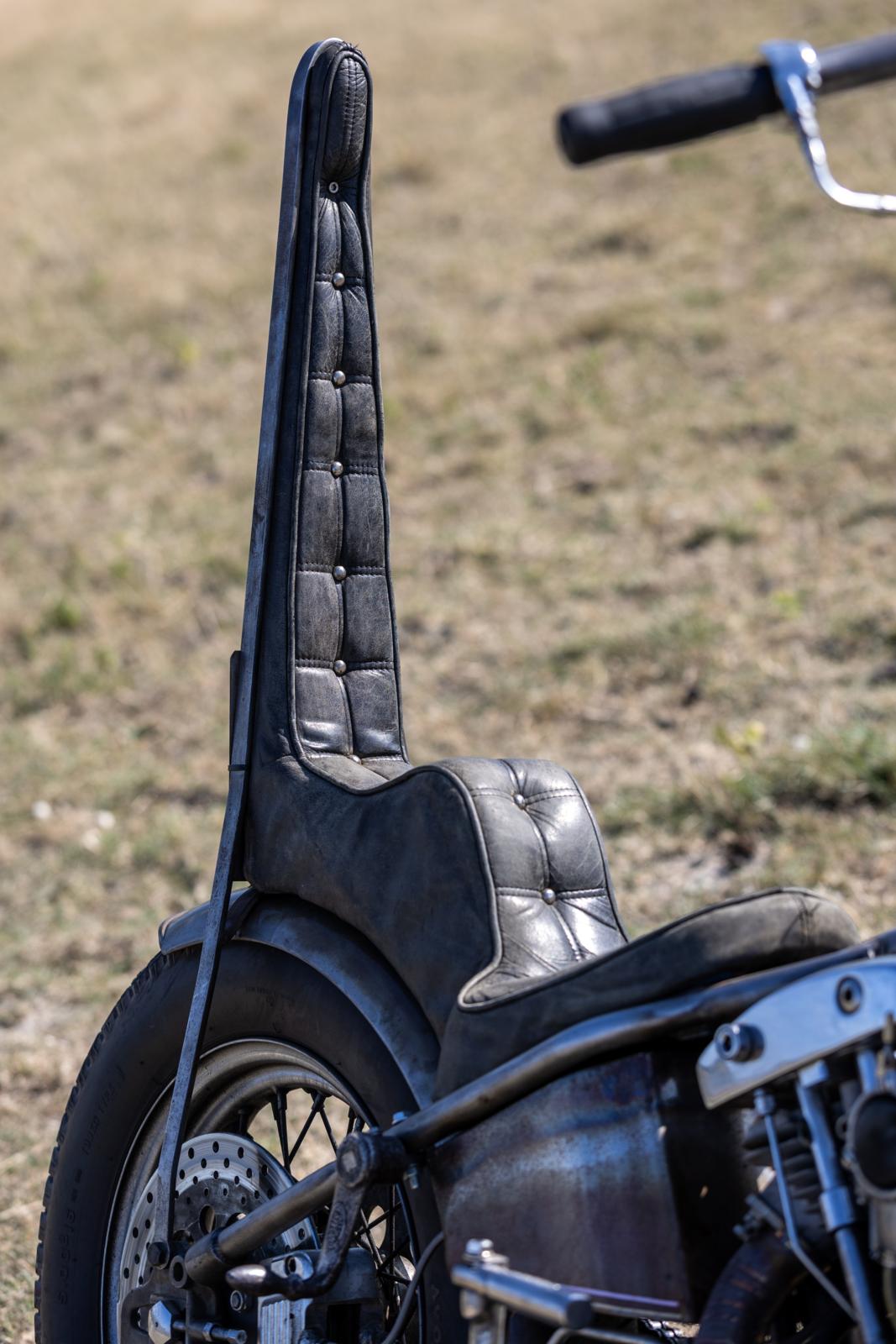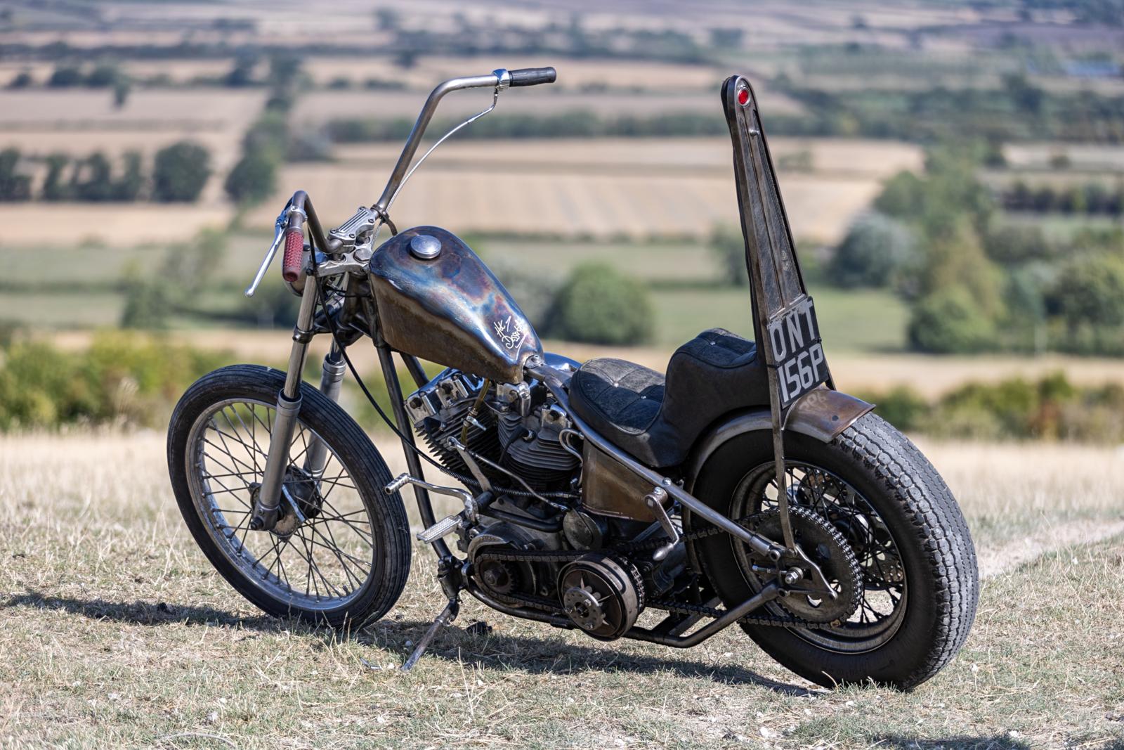 Net toen ik op het punt stond er eentje te kopen die ik in Ontario had gezien, stuurde mijn vriend Luke me een advertentie voor een Cone Shovelhead veel dichter in de buurt. De motor, oorspronkelijk een FXE Superglide uit 1976, had het grootste deel van zijn leven in Californië doorgebracht, maar was een jaar eerder naar het Verenigd Koninkrijk geïmporteerd en bevond zich nu in Schotland. Veel beter! Ik sprak met de verkoper en hij had nog meer goed nieuws: Een frame, carters en kentekenbewijs die bij elkaar hoorden en een volledig in Amerika gereviseerd blok met een perfecte bak. Natuurlijk moest ik hem hebben. Ik onderhandelde wat met die man en de Shovel was van mij. Ik had eerlijk gezegd geen idee welke kant ik met de verbouwing op zou gaan. De klassieke chopper-stijl vind ik wel geweldig; ik deel een werkplaats met Luke Townsend, die een prachtige Genny-Shovel uit ’69 heeft. Zoals je kunt zien, was die Genny-Shovel een serieuze inspiratiebron voor me, maar ik had ook stiekem een ​​beetje een oog op de Japanse stijl. Ik hou van de hoge midcontrols, de belachelijke sissybars en de verschillende, onpraktische en oncomfortabel ogende modificaties die zo kenmerkend zijn voor de Japanse Harley-scene.