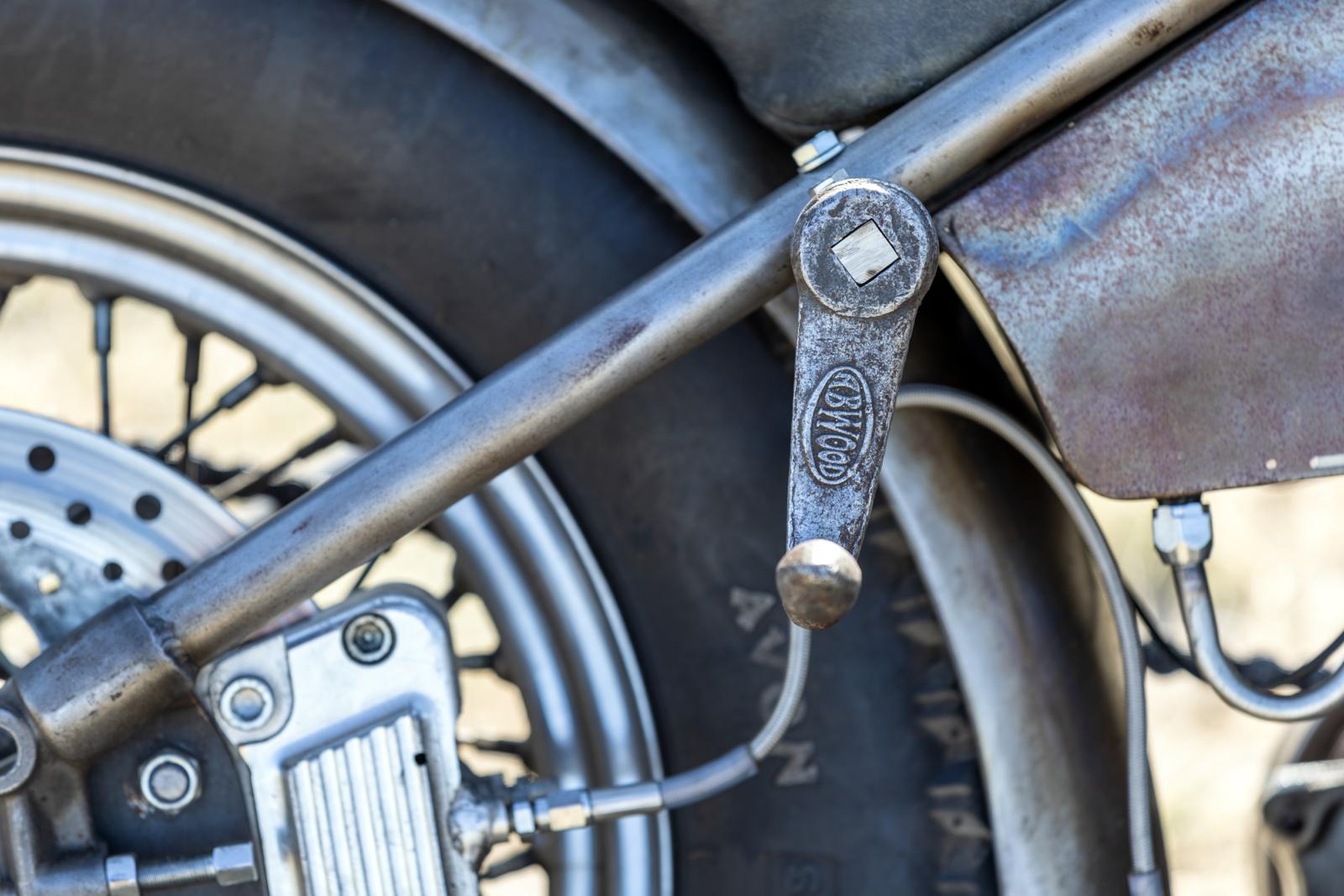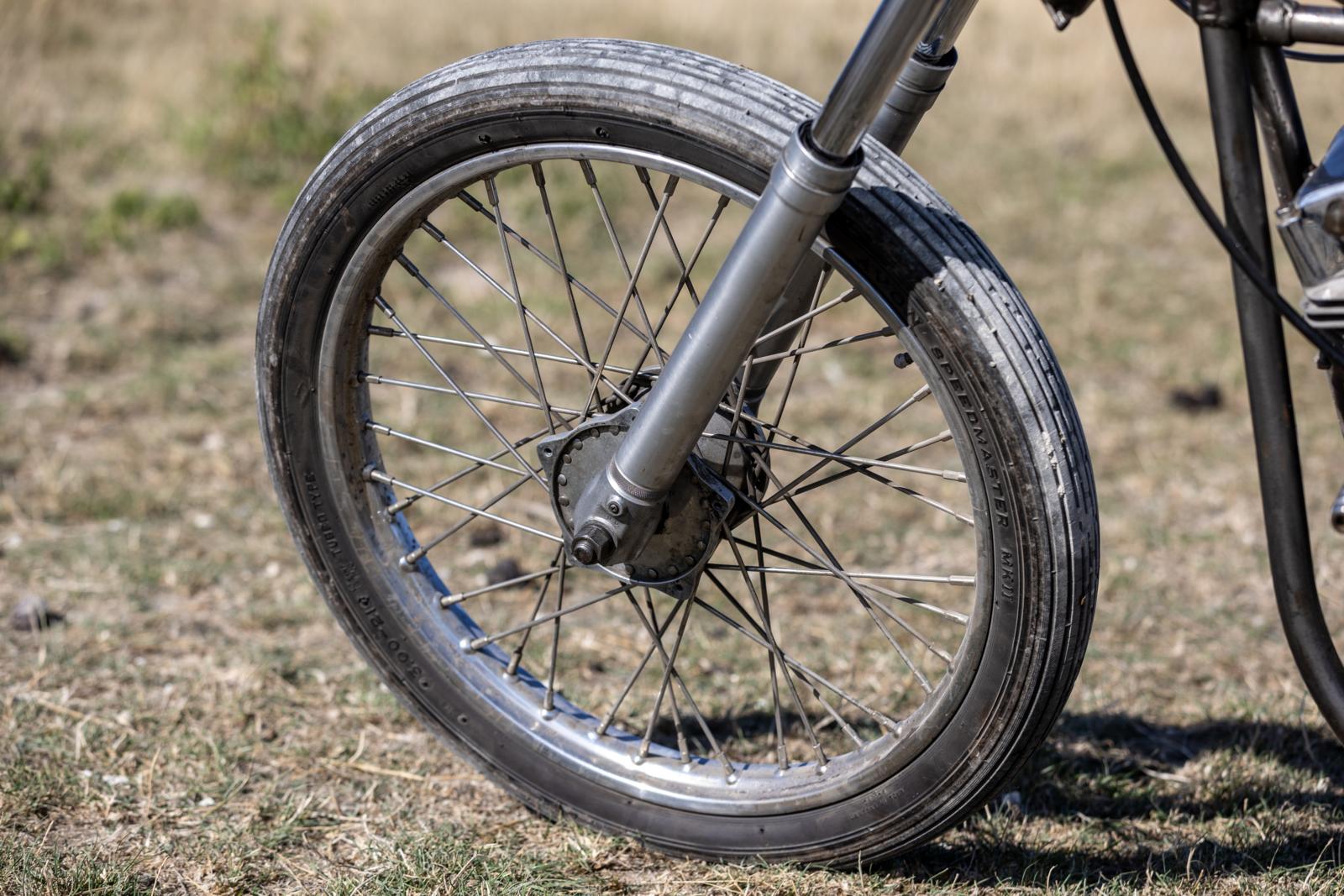 De dag dat ze bij me aankwam, ging ik meteen aan de slag. Mijn andere maat, Gibbo, was langsgekomen om me succes te wensen met mijn chopperavontuur, maar vooral om nog even snel wat onderdelen te scoren. Ik zeg dat met een knipoog; Gibbo is een legende en een fervent verzamelaar van originele spullen. Na een paar koppen thee (we blijven Britten) hadden we een deal en had ik afscheid genomen van mijn originele split-tanks, achterspatbord en koplamp. Alles geruild tegen Gibbo’s Sportster-tank, Triumph-stuur en Bates-koplamp. Ik heb ze er alledrie op gezet, samen met het op maat gemaakte King & Queen-zadel uit de jaren 70 dat ik had gekocht. Ik heb er zo een maand of wat meer rondgereden, maar wist al snel dat ik er een hardtail van wilde maken. Uit betrouwbare bron had ik gehoord dat Craig House in Frome de juiste man daarvoor was. Dus ik bestelde een van zijn hardtail kits en dat brengt me bij de eigenlijke bouw.