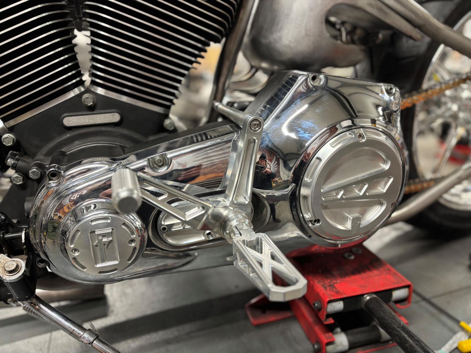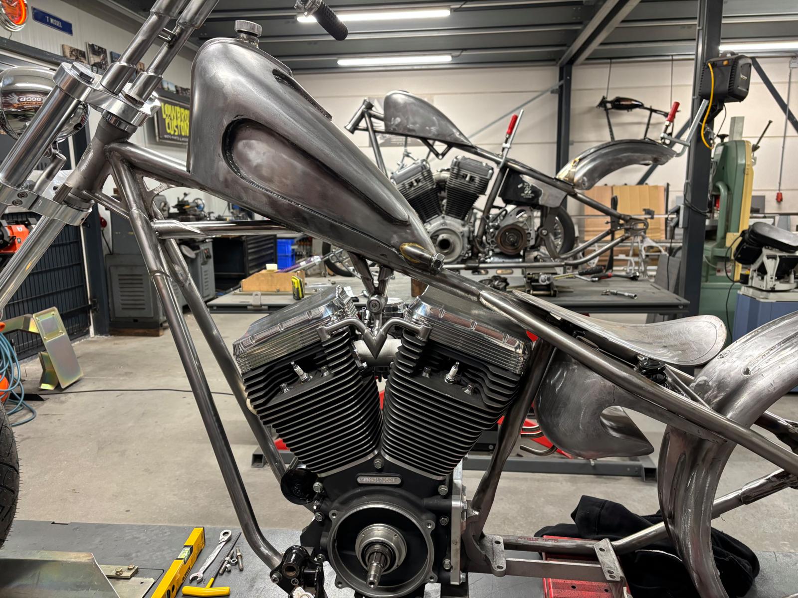 Ben sinds een aantal maanden ‘Officieel NL dealer’ geworden van de supergave parts van Famous Fabricator en ga voor deze bike gebruik maken van een coole set midcontrols en covers voor de primaire. Past perfect bij de stijl die ik voor ogen heb en is top spul om te monteren maar zeker ook om te gebruiken, sjeeeeuzus wat gááf! Ben weer lekker opgeschoten met de bouw, maar er is nog genoeg te doen voordat Incastienen zijn verfkunsten weer kan gaan botvieren op de bike. As bikebouwer bu-j nooit kloar! Nog een aantal onderdelen te gaan zoals, accubak, uitlaten en wat ik verder nog weer bedenk als ik bezig ben, haha. En natuurlijk alles uit elkaar om af te lassen en te slijpen. Maar dat gaat allemaal weer lukken, zodat deze bike met het mooie zomerweer de weg op kan!!